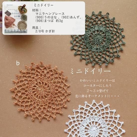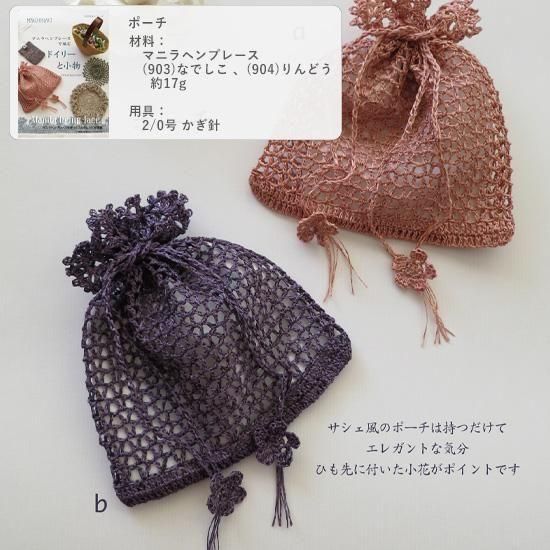 ※作品例としてご紹介しているマニラヘンプレースで編むストールのレシピは「洗える麻糸で編む上質バッグと帽子」でご紹介しております。